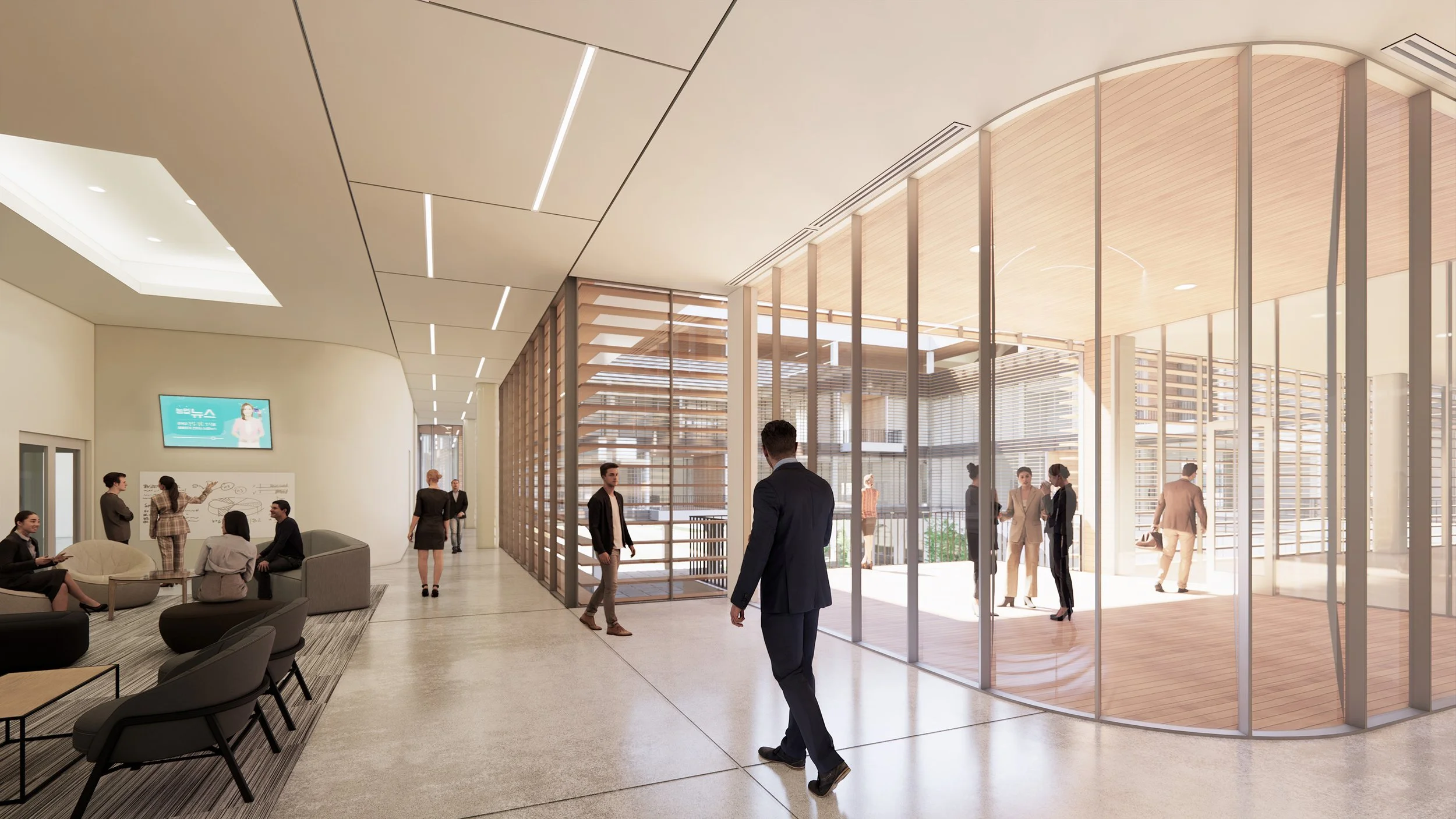 The headquarters building must effectively assist employees in their tasks in an independent environment while also providing flexible support for the core functions of other departments. In architectural response to this, we've designed the office mass, resembling a square with an open center, atop the four corners of two research buildings, an education building, and a welfare building. Consequently, pedestrians moving along the main street that spans the site traverse 'beneath' the office building mass, ultimately leading to the central garden.